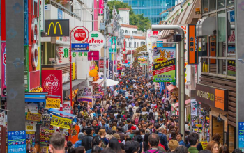 Takeshita Street is a 350-meter pedestrian shopping street in Harajuku, Tokyo, Japan. It's known for its fashion, food, and kawaii culture, and is popular with Tokyo's youth. The street runs from Harajuku Station to Meiji Dori Avenue, and is closed to vehicles from 11 AM–6 PM every day.